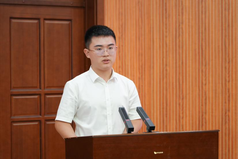 一等奖学金获得者、经济学院阎渤禹同学代表获奖学生发言。他向白钦先教授致以崇高敬意,向学校领导老师的精心培育表达感恩,向振兴银行的慷慨善举表示感谢,并表示未来将始终脚踏实地、奋力追梦,努力回馈母校、回报社会。
