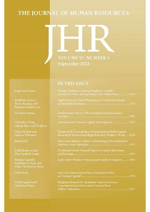 期刊简介:Journal of Human Resources创刊于1965年,影响因子为5.3,由威斯康辛大学出版社(University of Wisconsin Press)出版,是劳资关系与劳动经济学领域公认的国际顶尖期刊。