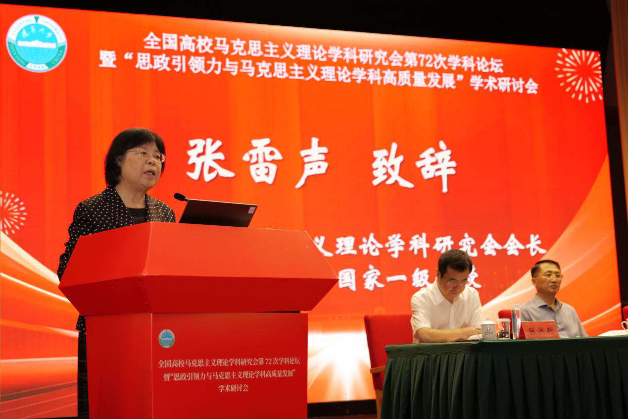张雷声对论坛的举办表示热烈祝贺,向与会专家学者致以衷心感谢。她强调,思政引领力是习近平总书记提出的教育强国“六力”中的首要内容,已被纳入《教育强国建设规划纲要》,这也为马克思主义理论学科服务教育强国目标提出了新课题和新使命。她指出,在马克思主义理论学科知识体系构建中,思政引领力应贯通整个一级学科而不仅限于思想政治教育二级学科。学科体系为思政课提供学理支撑;学术体系应体现政治引领、理论引领和价值引领;话语体系则需要体现学术性与政治性的统一,以实现该学科在哲学社会科学中的引领作用。她提出“学科思政”概念,强调思政引领力应贯穿课程建设、科学研究、教师发展和人才培养全过程,系统阐述了思政引领力与马克思主义理论学科深度融合的路径与方向,对推进新时代马克思主义理论学科高质量发展提供了清晰的学术框架和指导建议。