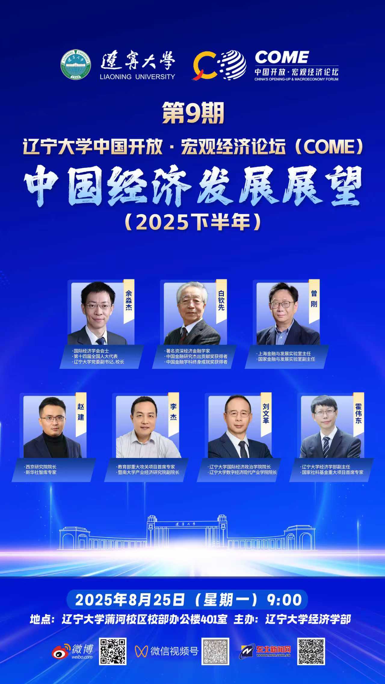 8月25日,中国开放・宏观经济论坛(COME)第9期即将在MK体育(国际)官方网站,mksport举行,本期论坛聚焦“中国经济发展展望(2025下半年)”,邀请多位知名经济学家展开联合研讨。