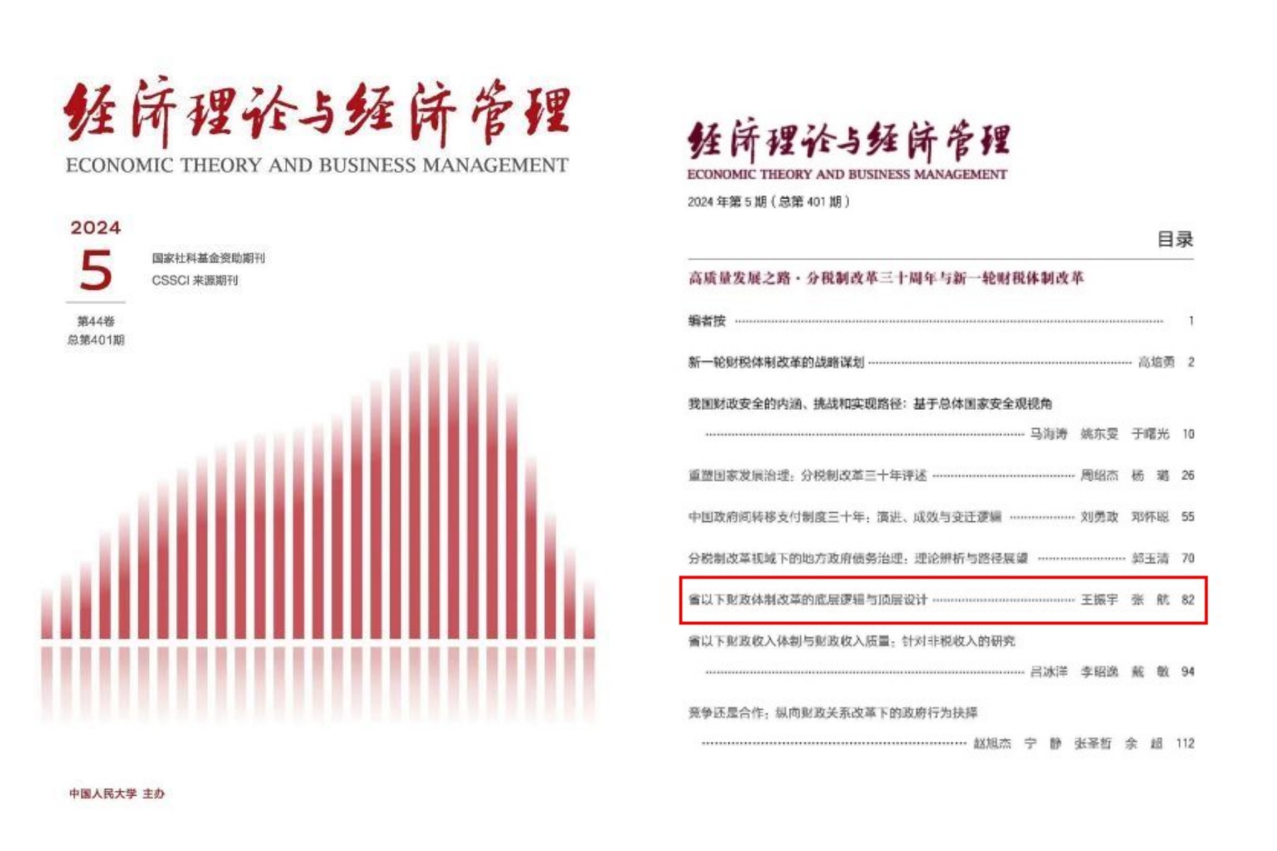 MK体育(国际)官方网站,mksport经济学院王振宇教授与博士研究生张航合作撰写的论文《省以下财政体制改革的底层逻辑与顶层设计》在《经济理论与经济管理》2024年第5期发表。