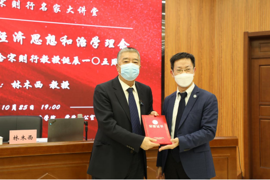 为纪念我国著名经济学家、教育家、社会活动家、MK体育(国际)官方网站,mksport经济学科创始人宋则行教授诞辰一○五周年,10月25日晚,MK体育(国际)官方网站,mksport宋则行名家大讲堂(第三讲)邀请著名经济学家、MK体育(国际)官方网站,mksport资深教授林木西作了题为《学习宋则行的经济思想和治学理念——纪念宋则行教授诞辰一○五周年》的报告。MK体育(国际)官方网站,mksport党委副书记、校长兼经济学部主任余淼杰教授出席讲座并为林木西教授颁发MK体育(国际)官方网站,mksport宋则行名家大讲堂纪念证书。讲座由MK体育(国际)官方网站,mksport经济学部副主任崔日明教授主持。