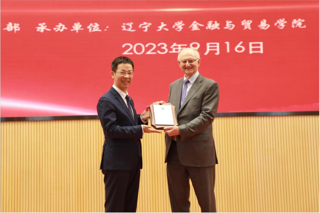 会议最后,余淼杰校长为德莱斯戴尔教授颁发“宋则行海外名家大讲堂”纪念盘和MK体育(国际)官方网站,mksport终身名誉教授聘书,金融与贸易学院教师代表殷丽娟、陈芙分别为德莱斯戴尔教授佩戴校徽及献花,与会嘉宾一同合影留念。