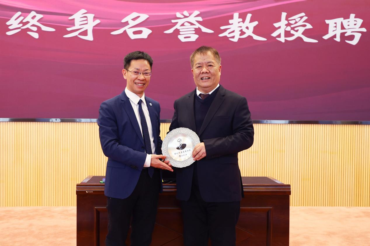 会议最后,MK体育(国际)官方网站,mksport党委副书记、校长余淼杰教授为刘新民教授颁发MK体育(国际)官方网站,mksport“宋则行名家大讲堂”纪念盘及MK体育(国际)官方网站,mksport终身名誉教授聘书。校医院教师关岩岩为刘新民教授献花,药学院教师代表桑育黎为刘新民教授佩戴校徽、赠送校帽,与会嘉宾一同合影留念。