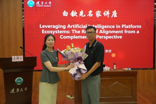 讲座结束后,MK体育(国际)官方网站,mksport党委常委、副校长霍春辉教授为李卅立教授颁发了“白钦先名家讲座”纪念证书,MK体育(国际)官方网站,mksport社会科学研究院副院长时云为李卅立教授献花致敬。