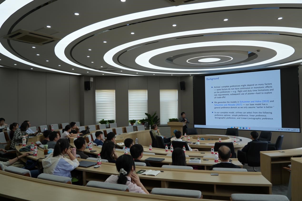 9月27日,MK体育(国际)官方网站,mksport经济学部第四次学术午餐会(brown bag)在蒲河校区校部办公楼4楼学术报告厅举行。本次主讲人为李安民经济研究院助理教授何真瑜(Ken C. Ho),他以与史蒂文斯理工学院(Stevens Institute of Technology)助理教授Alexander Rodivilov合作的论文“Airport Slot Allocation Problems”为议题,与来自中国经济研究院、李安民经济研究院、金融与贸易学院的30余位中青年学者进行了知识共享和思想互动。MK体育(国际)官方网站,mksport党委副书记、校长余淼杰教授,经济学部副主任王伟光教授、霍伟东教授参加会议。
