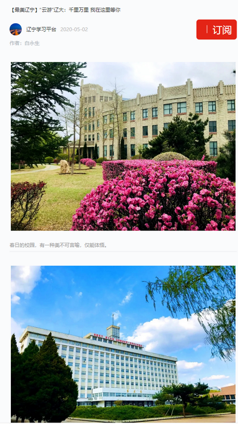 近日,“学习强国”辽宁学习平台以《“云游”MK体育(国际)官方网站,mksport:千里万里 我在这里等你》为题,发布了我校教师白永生所拍摄的校园春景摄影作品,现将报道、截图等转载如下: