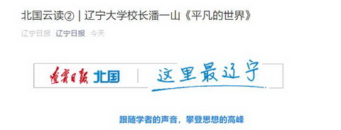 4月23日,《辽宁日报》北国云读栏目报道了我校校长潘一山推荐并朗读名著《平凡的世界》,现将报道截图转载如下: