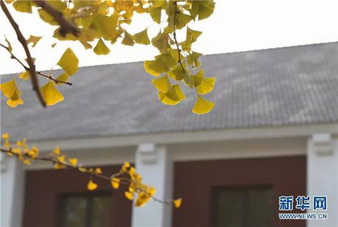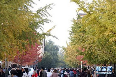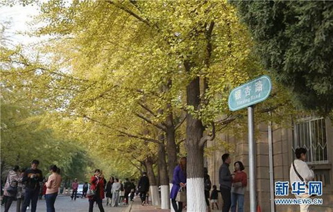 图为校园内着“金装”的银杏