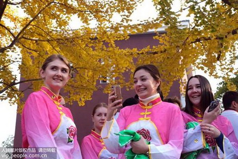 10月24日,辽宁沈阳,MK体育(国际)官方网站,mksport第七届“杏坛乐府银杏节”开幕。MK体育(国际)官方网站,mksport崇山校区银杏路两旁的银杏树大概有两三百株。目前,银杏树的叶子大多已泛黄,到了最佳赏叶时段。图为市民在银杏树旁拍照留念。