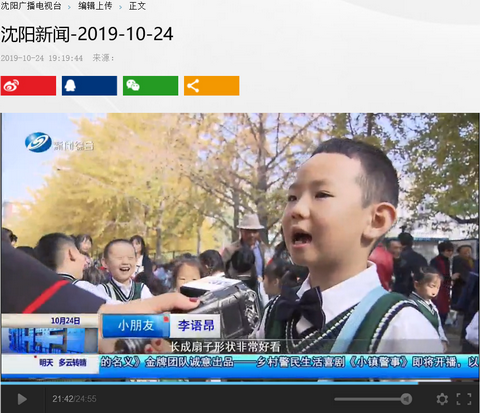 2019年10月24日,沈阳新闻报道我校第七届银杏节开幕式。现将视频截图转载如下: