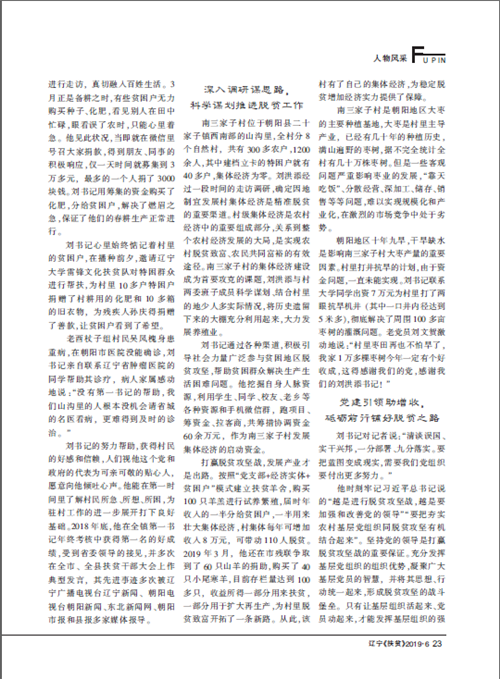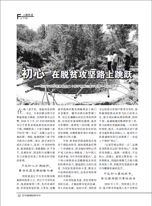 近日,《辽宁扶贫》2019年第6期(总第114期)在“人物风采”栏目以“初心 在脱贫攻坚的路上跳跃——记MK体育(国际)官方网站,mksport驻朝阳县二十家子镇南三家子村第一书记刘洪添”为题,对我校驻村扶贫干部刘洪添进行专题报道,并将其作为该期封面人物。现将原文转载如下: