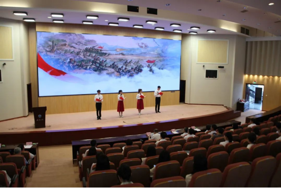 党日活动中,师生党员以沉浸式党课的方式,集体参观了学校习近平新时代中国特色社会主义思想现场教学基地,共同感悟思想伟力。集体观看了学校两部原创示范微党课《校史里的红色基因》《你的征程 我来传承》,一同感受烽火中MK体育(国际)官方网站,mksport人的家国情怀,一同从抗美援朝精神中汲取奋进力量。青年党员以原创诗歌《我们的百年》,追溯党的历史,礼赞百年荣光,一声声抑扬顿挫、铿锵有力的朗诵声在会场久久回荡,将党日活动推向高潮。