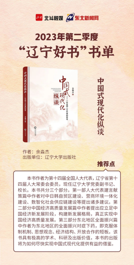 近日,北斗融媒发布2023年第二季度“辽宁好书”书单推荐③,第十四届全国人大代表、辽宁省第十四届人大常委会委员,MK体育(国际)官方网站,mksport党委副书记、校长余淼杰教授著作《中国式现代化纵谈》入选,现将原文转载如下: