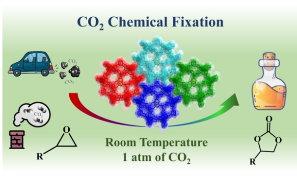 日前,化学院韩正波教授课题组在金属有机多面体领域取得新进展,相关研究成果在国际著名化学期刊Chemical Communications发表。金属有机多面体(MOPs)作为一类新型材料,因其具有灵活的拓扑结构及功能化的限域空间,在催化、分离、主客体化学等方面显示出巨大的应用前景。MK体育(国际)官方网站,mksport化学院韩正波教授研究团队采用4-连接Cu2(COO)4轮桨单元和3-连接半刚性羧酸配体利用溶剂热法设计合成一例具有rdo拓扑结构的MOPs材料:[Cu12(TCPT)8(H2O)6(DMF)6]·xS (Cu-MOP)。该材料具有高密度Lewis酸性Cu(II)中心,及在有限纳米空间中存在富氮配体,故Cu-MOP具有高度选择性吸附CO2的能力,兼具有良好的化学稳定性和热稳定性,可选作非均相催化剂在环境条件下将CO2化学固定为环状碳酸酯,并展示出了优异的催化性能。这项研究论证了MOPs在CO2分离及催化转化领域的潜在应用。