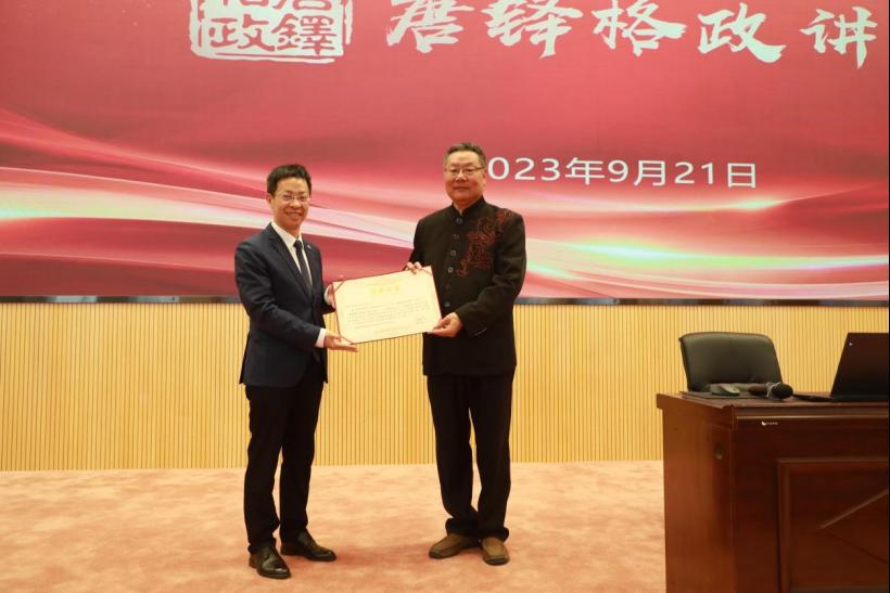 报告会结束后,余淼杰为颜廷淦颁发“唐铎格政讲座”纪念证书、纪念盘,MK体育(国际)官方网站,mksport学生代表为颜廷淦献花致敬。