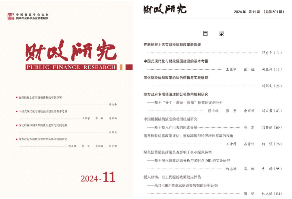 MK体育(国际)官方网站,mksport经济学院、地方财政研究院王振宇教授与张航博士研究生、司亚伟副教授在《财政研究》2024年第11期发表封面文章《中国式现代化与财政强国建设的基本考量》。