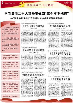 习近平总书记在参加党的二十大广西代表团讨论时强调,我们要坚定历史自信、增强历史主动,在新的赶考之路上向历史和人民交出新的优异答卷。