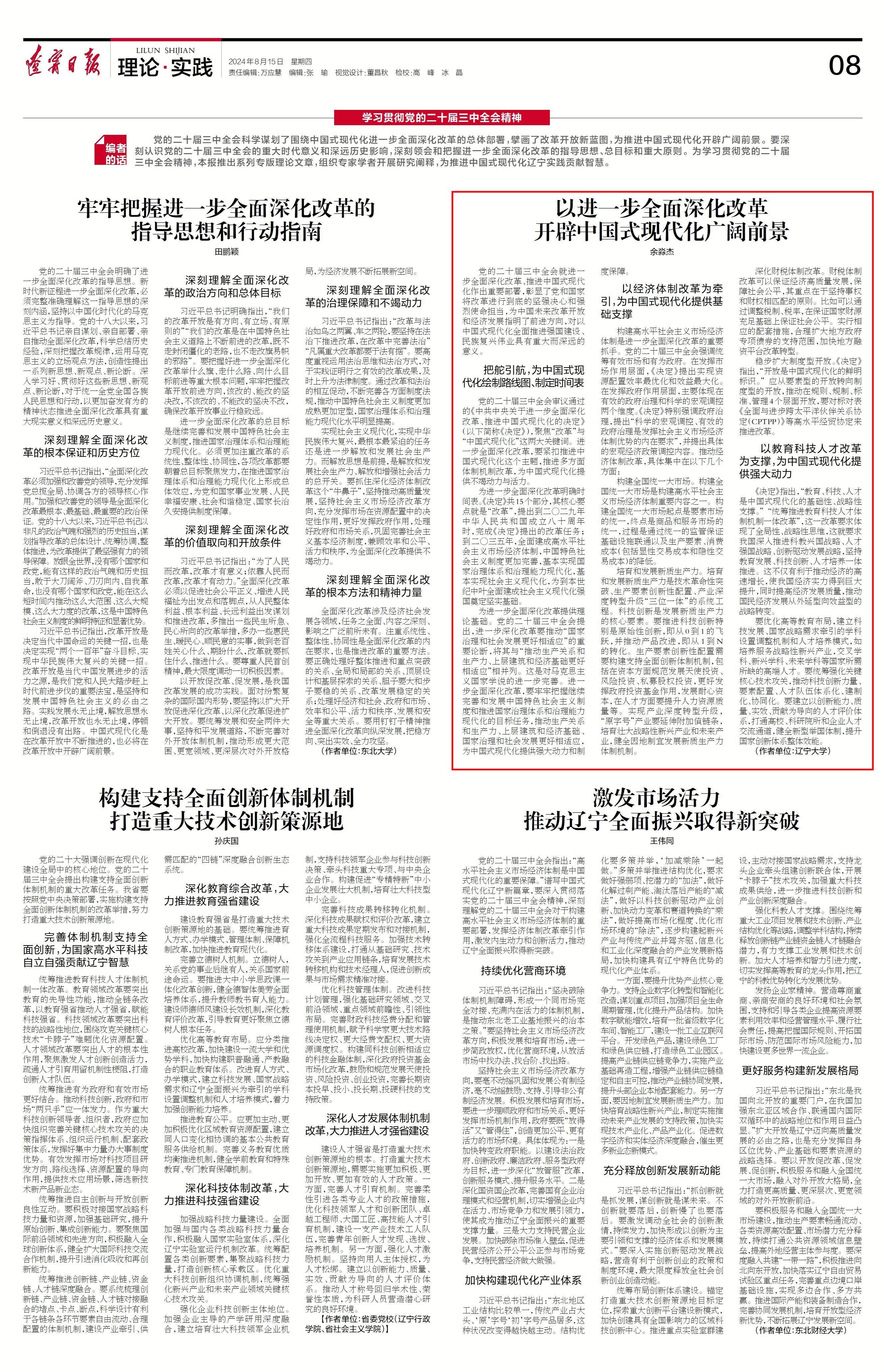 党的二十届三中全会就进一步全面深化改革、推进中国式现代化作出重要部署,彰显了党和国家将改革进行到底的坚强决心和强烈使命担当,为中国未来改革开放和经济发展指明了前进方向,对以中国式现代化全面推进强国建设民族复兴伟业具有重大而深远的意义。