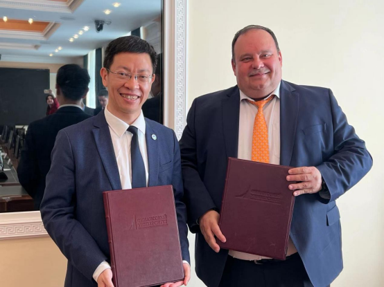 6月8日,余淼杰一行访问了俄罗斯联邦政府财政金融大学。俄罗斯联邦政府财政金融大学校长斯坦尼斯拉夫•普罗科菲耶夫、负责学术和方法论工作的副校长叶卡捷琳娜•卡梅内娃、国际合作部主任莉莉娅•普里霍德科、社会科学与大众传播学院院长亚历山大•沙蒂洛夫等接待了MK体育(国际)官方网站,mksport代表团。两校代表就双方深入合作问题进行了探讨,并达成了框架性协议,随后举行了签字仪式。双方同意以3+1模式开设世界政治学士双学位项目,以1+1模式合作培养“政治和商业 PR(公共关系)和 GR(政府关系)技术”硕士学位项目。此外,两校还就2023-2024学年组织教师学术交流达成了合作意向。